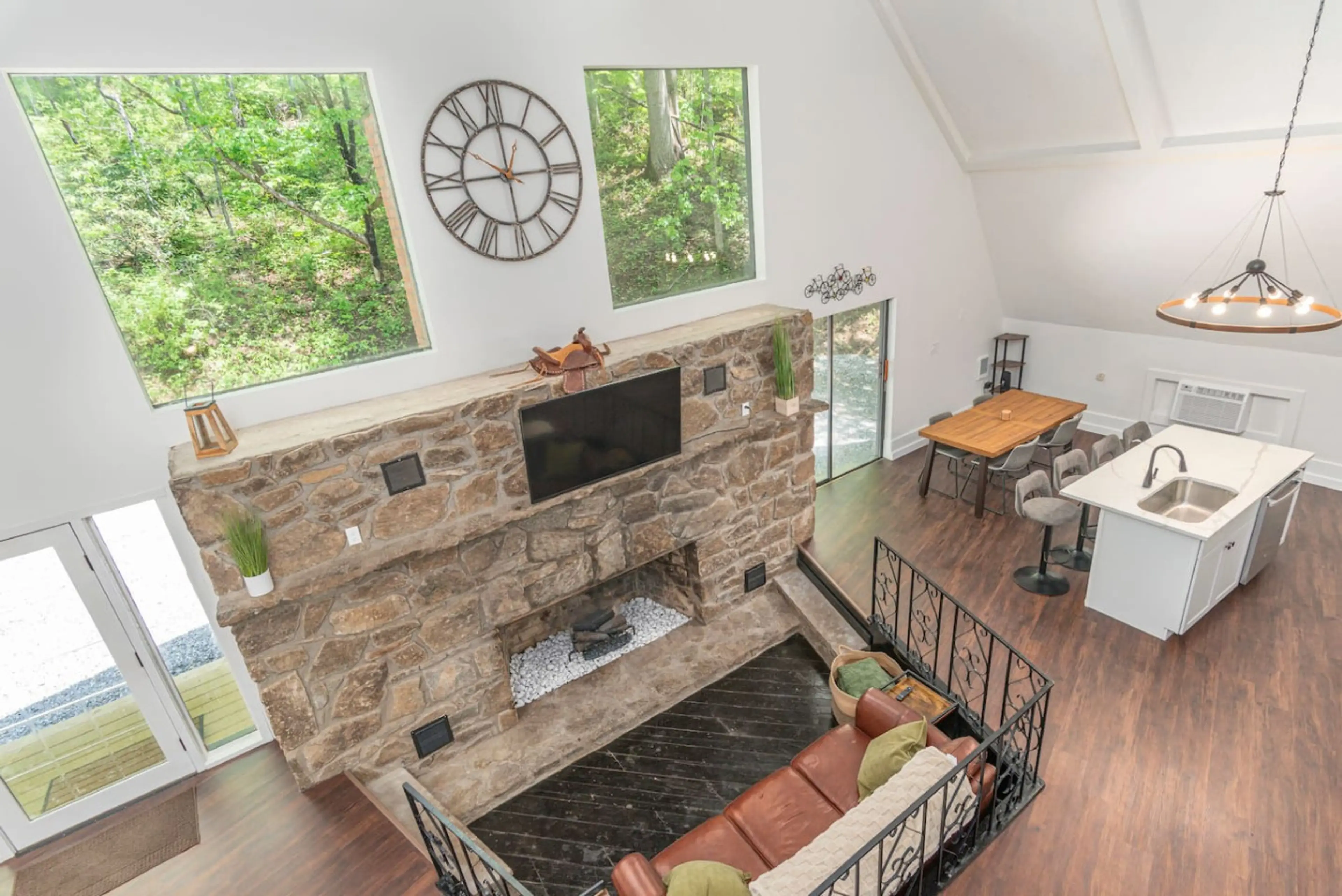 Positive: Opening the bedroom windows to let the fresh mountain air was such a treat. Comfortable beds, soft sheets, and ample amount of towels. Soothing jacuzzi. Fun arcade games downstairs, and smart TVs in every room. Attic game room would be perfect for teenagers to hide out in. As for the wee ones, there are lots of hiding spots to play hide and seek inside. The oversized beanbag chairs were absolutely awesome. Hammocks outside in the woods. Discovering a stocked kitchen with pots and pans, k-cup and drip coffee pot, some food, coffee essentials, and seasonings, was delightful. Smoker outside. Everything was spotless. The staircase is gorgeous and easy to maneuver.